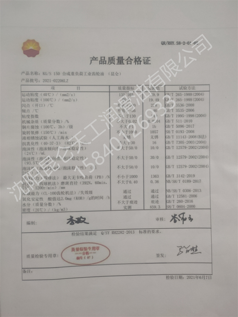 满足标准:AIST224、DIN51517(Flender)