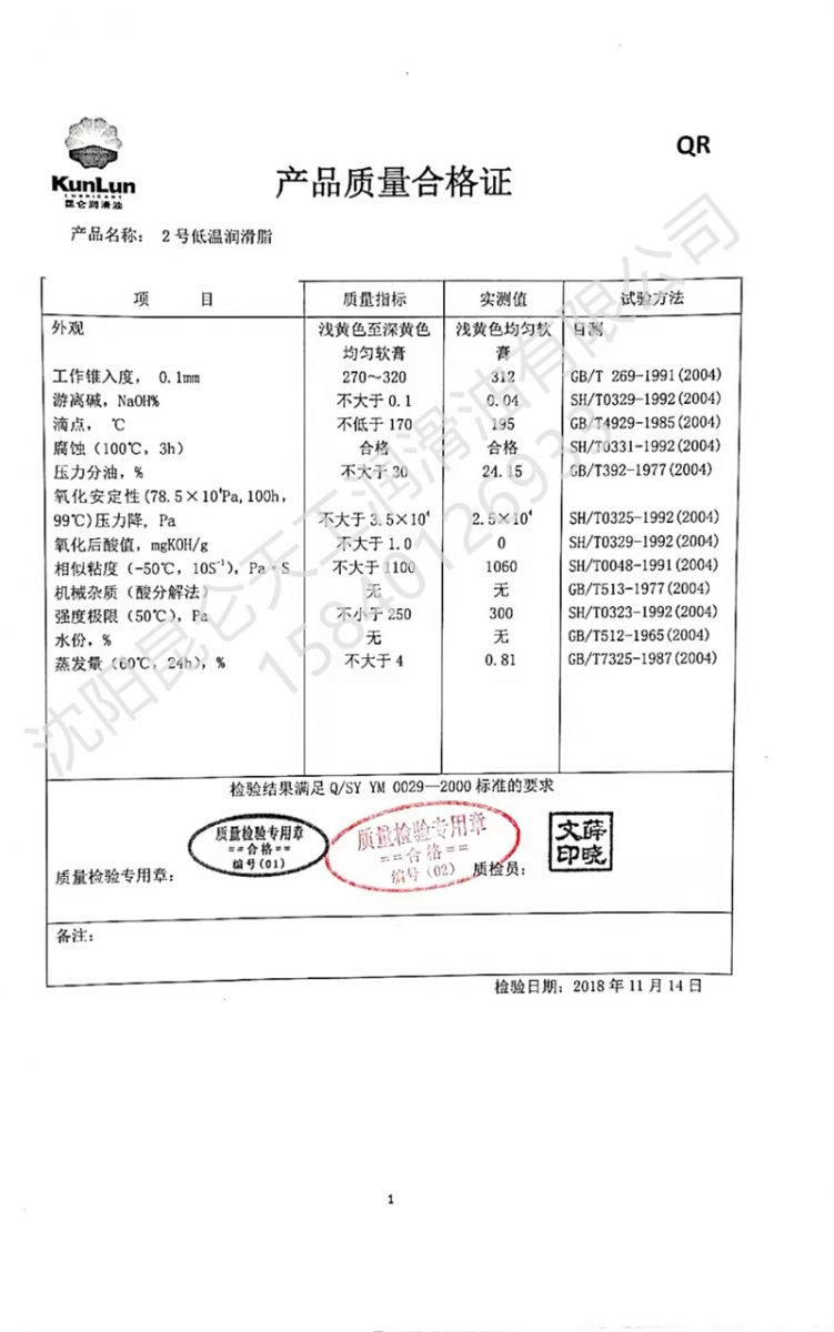 昆仑低温润滑脂2号