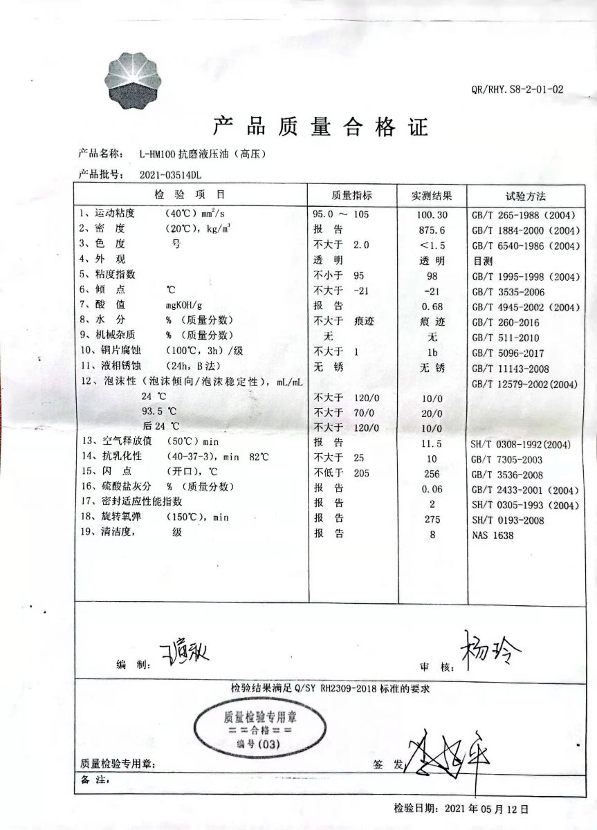 产品牌号:32、46、68、100。
