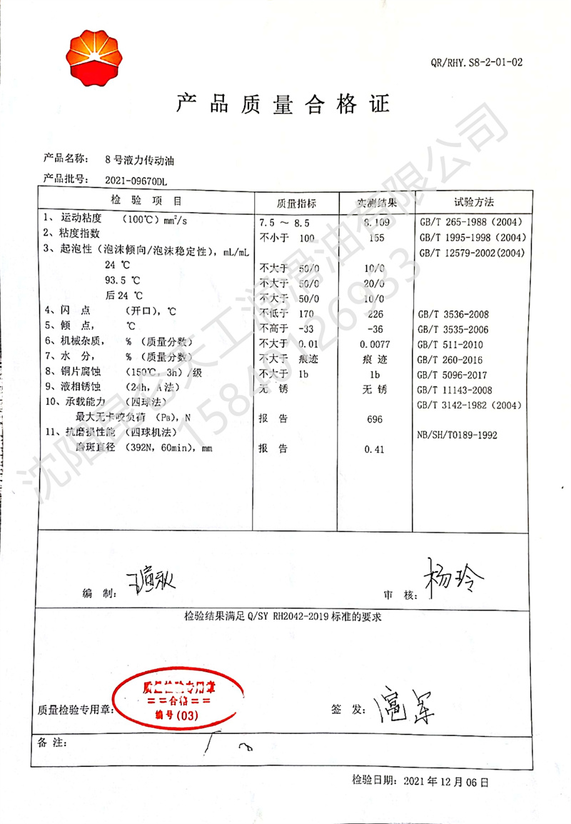 执行标准:Q/SY RH2042-2019 包装规格:13KG