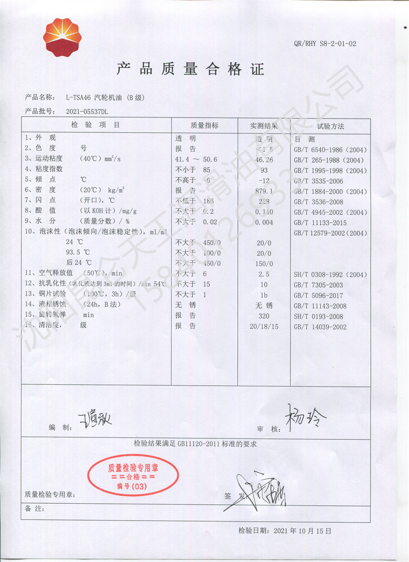 昆仑L-TSA汽轮机油(A级)32/46/68示例图3