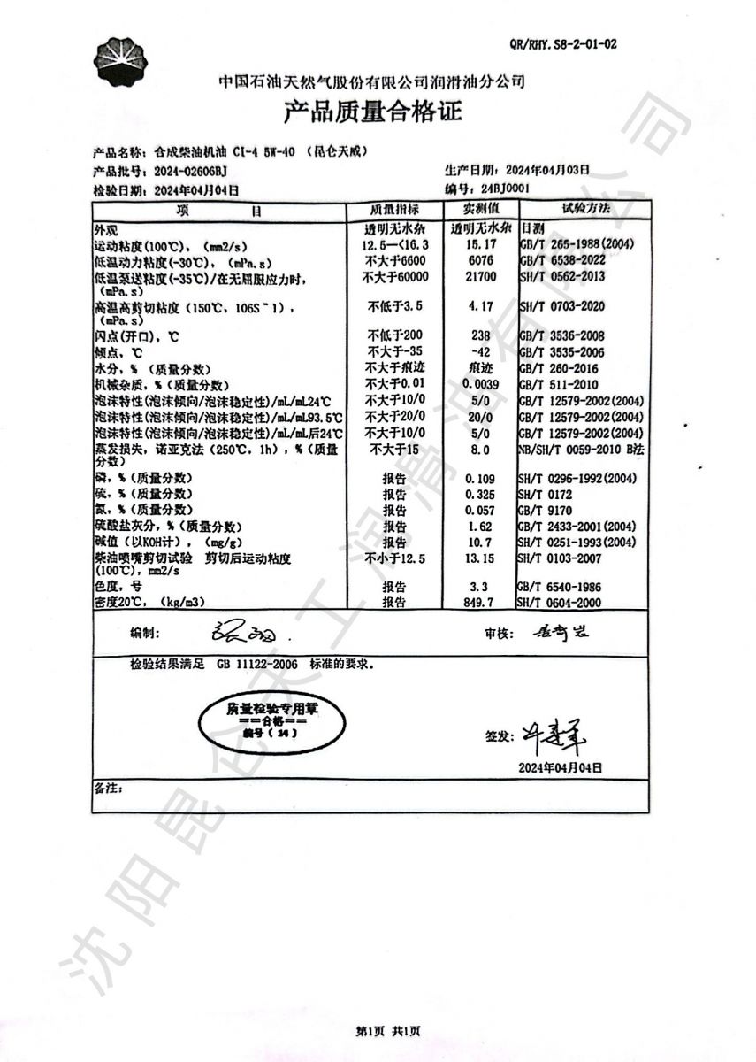 铁路机车四代/五代内燃机油
