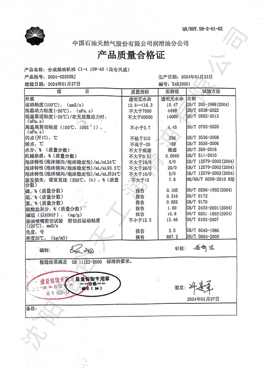 昆仑天威CI-4 15W40合成
