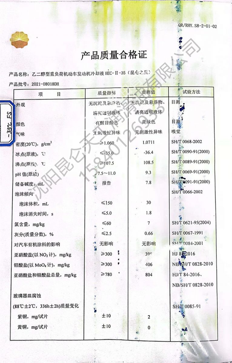 昆仑之星乙二醇型重负荷机动车发动机冷却液 -40