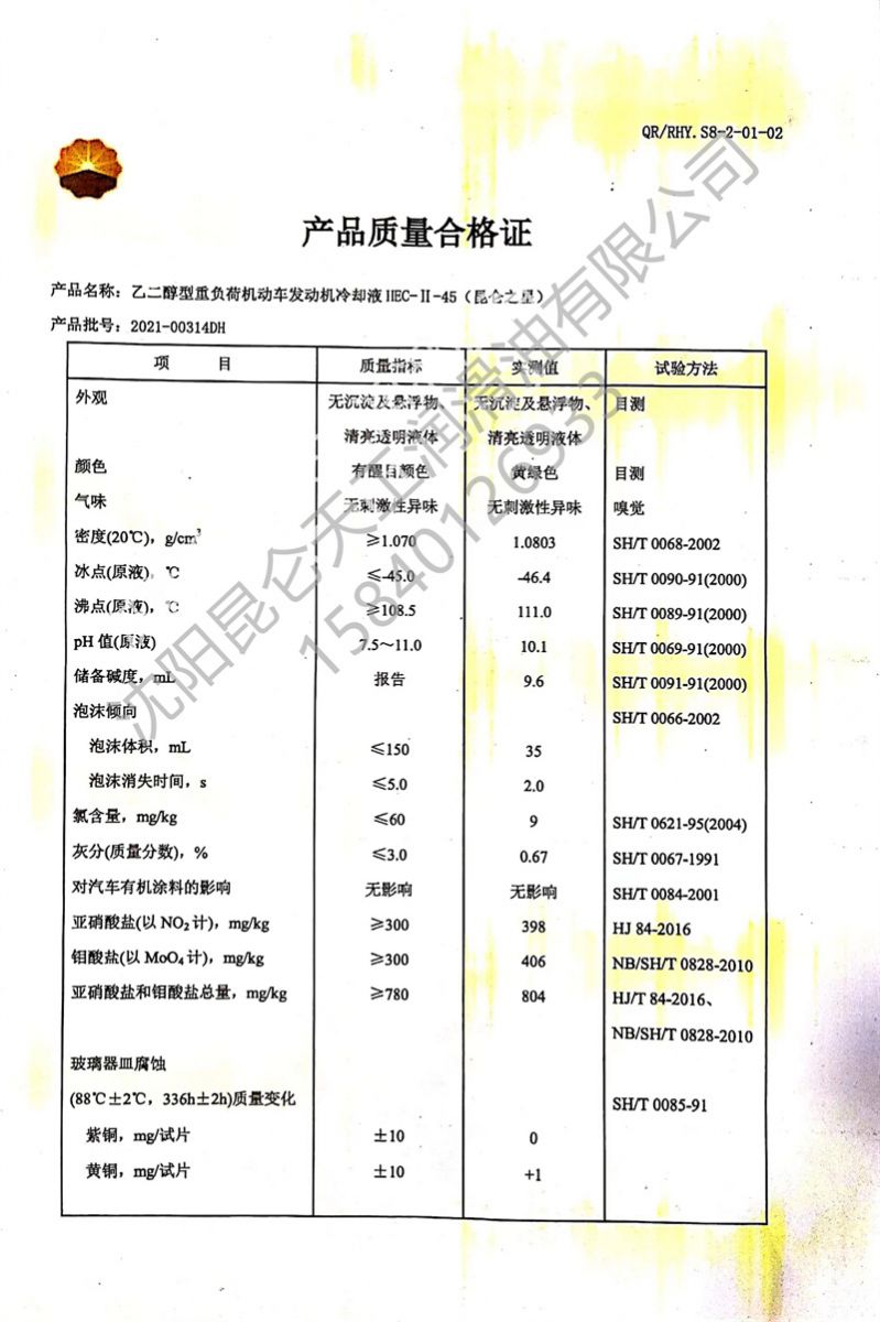 昆仑之星乙二醇型重负荷机动车发动机冷却液-45