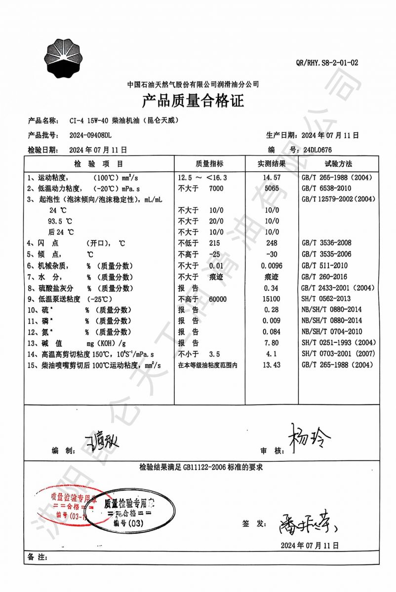 昆仑天威CI-4 15W40