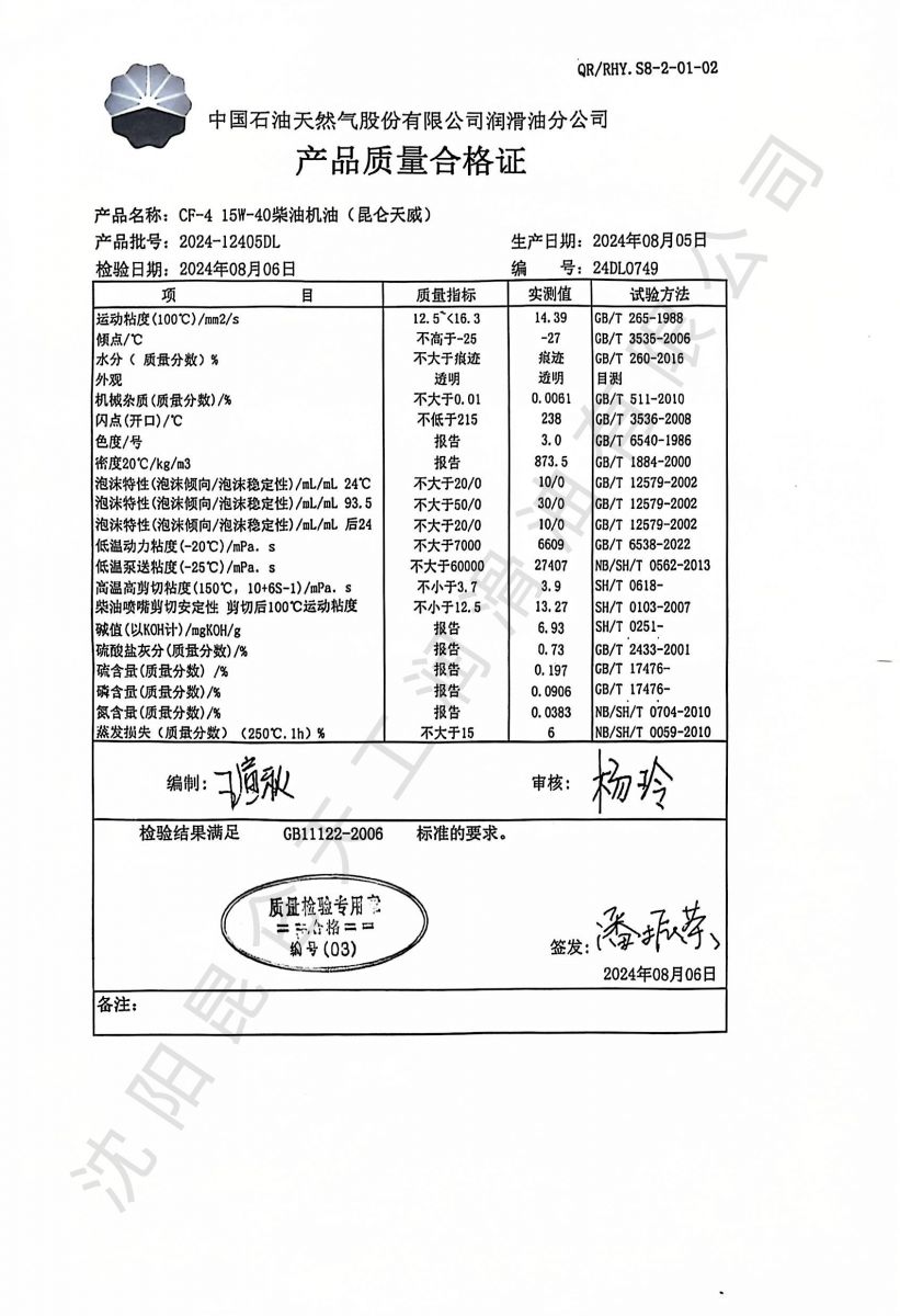 昆仑天威CF-4 15W40